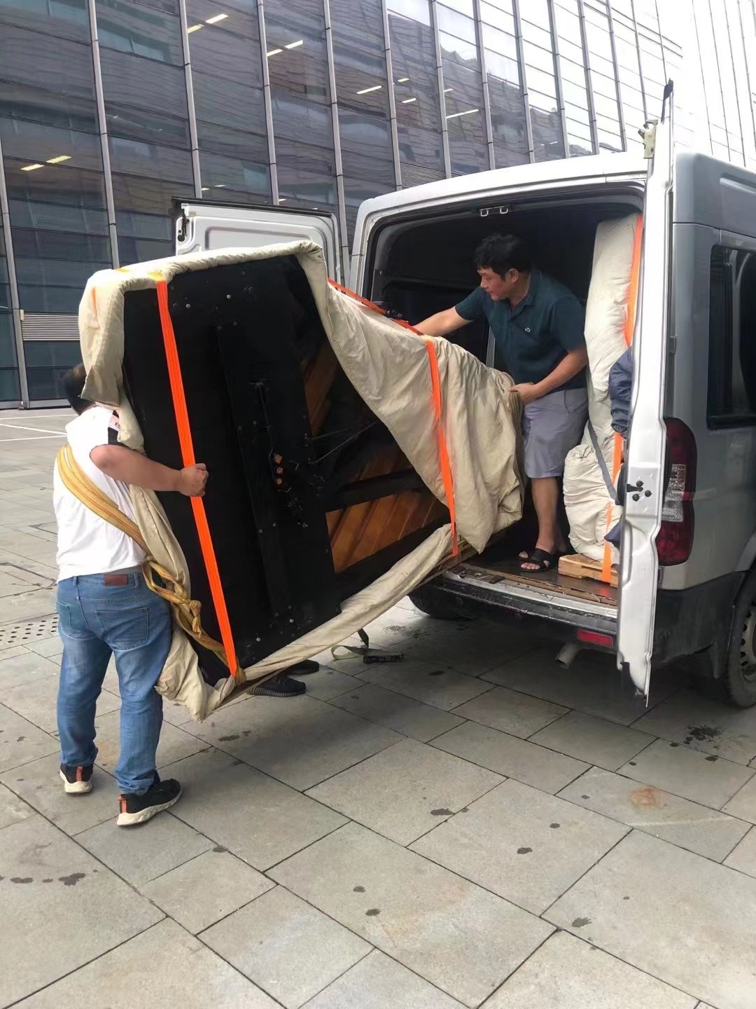 我们的演出三角钢琴顺利送到珠江国际纺织城...